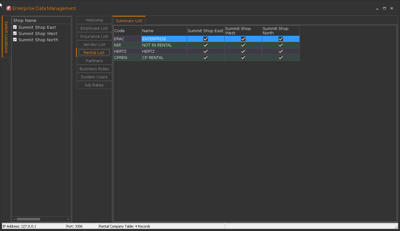 EDM (Enterprise Data Manager) is a program that allows you to manage common information between multiple locations built for the multi-shop operator. EDM allows you to manage common shop data lists data like employee, insurance, vendor & rental company lists across multiple locations. Easily manage your job rates, business rules, Summit system users for all locations!